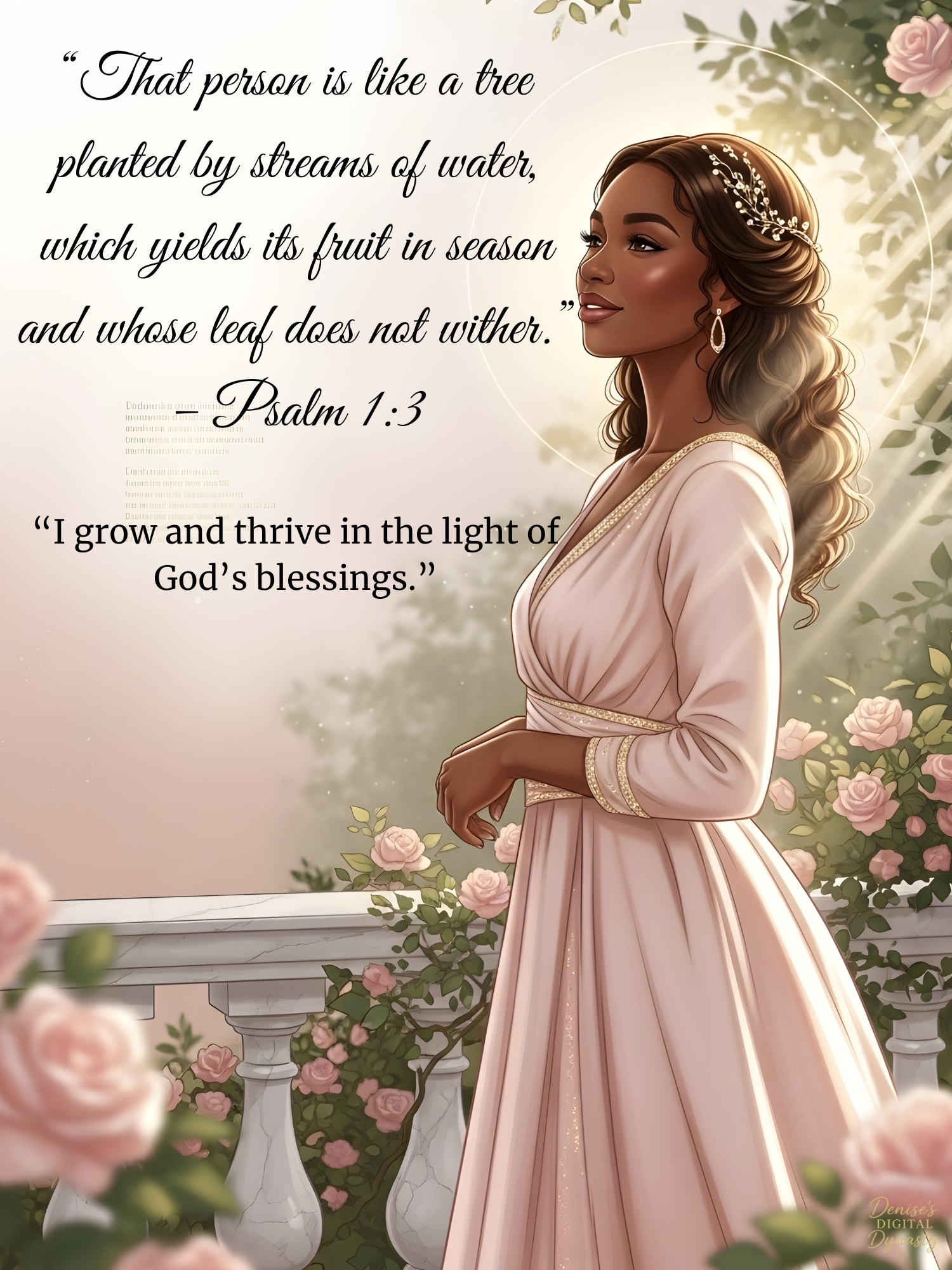 Bring uplifting inspiration to your space with this Psalm 1:3 digital wall art. Featuring the empowering verse about growth and resilience alongside a positive affirmation, it’s designed to nourish your spirit daily.